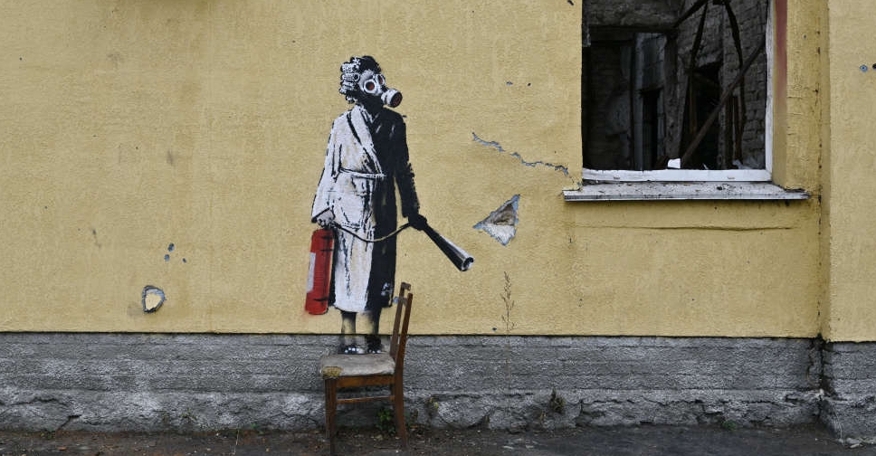 A group of people tried to take a mural by graffiti artist Banksy in Ukraine on Friday by cutting it off a battle-scarred wall where it was painted, the governor of Kyiv region said.