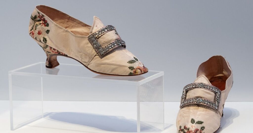 If I were in New York City on this fine autumn day, I would put on my cutest walking shoes (side note: cute walking shoes, sadly, are something of a holy grail) and amble over to The Museum at FIT, where the exhibit “Shoes: Anatomy, Identity, Magic” is on display through the end of December. Among the more than 300 pairs on display are these well-worn beauties: The pair on the left is from the 18th century, and the one on the right, from the early 20th century, with one design taking inspiration from the other. I love imagining where these shoes walked, where they danced, where they rested.