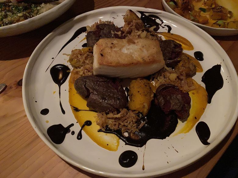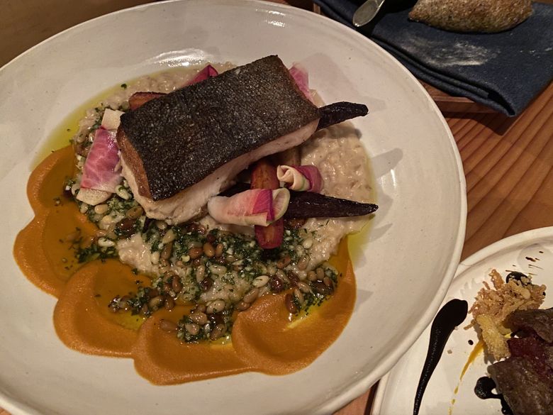 But multiple other dishes felt flawed in serious ways: elaborately plated in a painterly, showy style with plethoras of components that, instead of resonating, ended up falling flat on the palate, compositions that tasted confusing rather than good. Errors were made — undercooked roasted carrots, halibut overcooked until seized up and dry. I ate the lion’s share of the menu on two visits, spending a pile of the newspaper’s money — Seabird’s small plates range from $13 to $31, with shareable large ones in the $50s — and came away feeling disconcerted and sad.