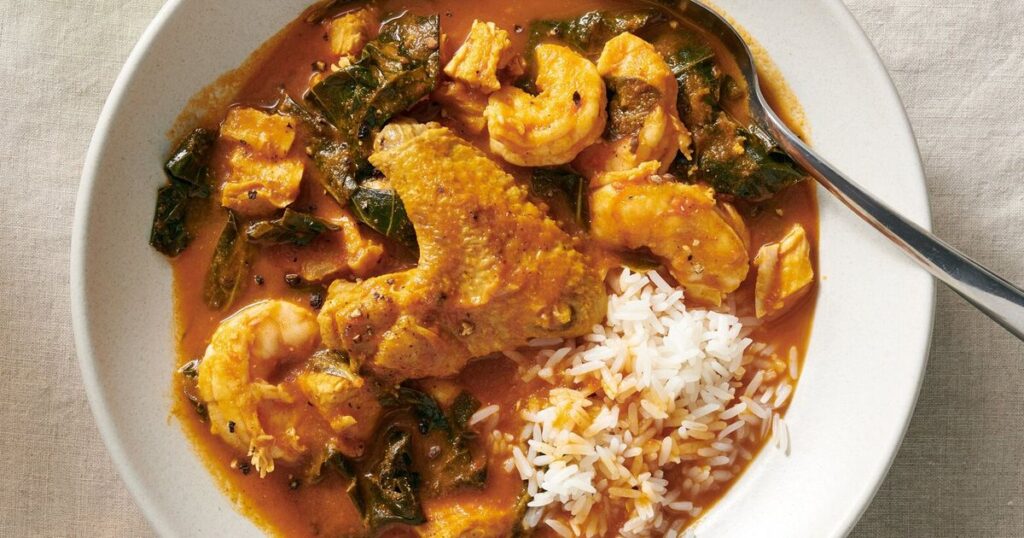 This recipe, adapted from Gail Jennings of North Carolina, is what her family thinks of as the daddy of all gumbos, a thick mix of leftover roast turkey rounded out with plump shrimp, chicken wings and collard greens. Jennings spikes the soup with a mix of curry powder and King’s Pepper, a spice blend that she developed based on a West African recipe. But any chili powder, including cayenne, can be substituted.